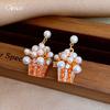 Kolczyki wiszące z zawieszką w kształcie popcornu z perłą – Wysokiej klasy srebro 925 z inkrustowanymi perłami