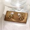 Koreańska Moda Perłowe i Cyrkoniowe Kolczyki Kokardki w Kształcie Serca - Eleganckie i Wszechstronne