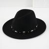 Unisex Kapelusz Kowbojski Western z Metalowymi Nitami i Skórzanym Paskiem - Płaskie Rondo Styl Jazzowy