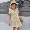 Wiosna Lato Solidna Krótka Sukienka Damska Casual V Neck Pojedyncze Łuszcz Letnie Sukienki Linia Morelowy Granatowy S M L XL