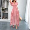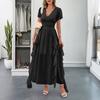Casual Vacation Style Short-sleeved Cinched-waist Long Dress for Women's Wear Spring/Summer 2025