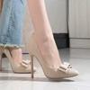 2025 Beautiful Bridal Wedding Shoes Comfortable Suede Single Shoes Women's Autumn and Winter Bow Thin Heel Pointed Side Empty High Heels