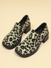 Buty damskie jesienne na grubym obcasie, na niskim obcasie, pojedyncze, w panterkę, wsuwane mokasyny w dużych rozmiarach
