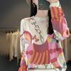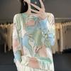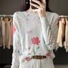 Sweter dzianinowy z okrągłym dekoltem damski letni cienki modny wszechstronny drukowany podkoszulek