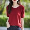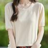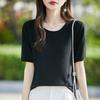Letni Czysta Bawełna Podwinięty Niski Okrągły Dekolt Damski Krótki Rękaw Jednolity Kolor Casual Wszechstronny Świeży Suchy Wygodny Sweter T-shirt