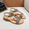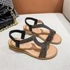 Wedge heel sandals women's spring and summer new fairy wind rhinestone elastic band open-toe fashion sandals