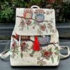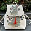2025 Nowa Torba w Stylu Etnicznym Haftowana Torba Płócienna Plecak z Klapą na Sznurek Damski Plecak Casualowy Haft Złotą Nicią