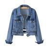 Damskie Szorty Kurtka Dżinsowa Moda Casual Płaszcz Czarny Klapy Jednorzędowa Długi Rękaw Kurtka