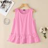 VONDA Damskie letnie topy bez rękawów z okrągłym dekoltem i falbanami, casualowa bluzka