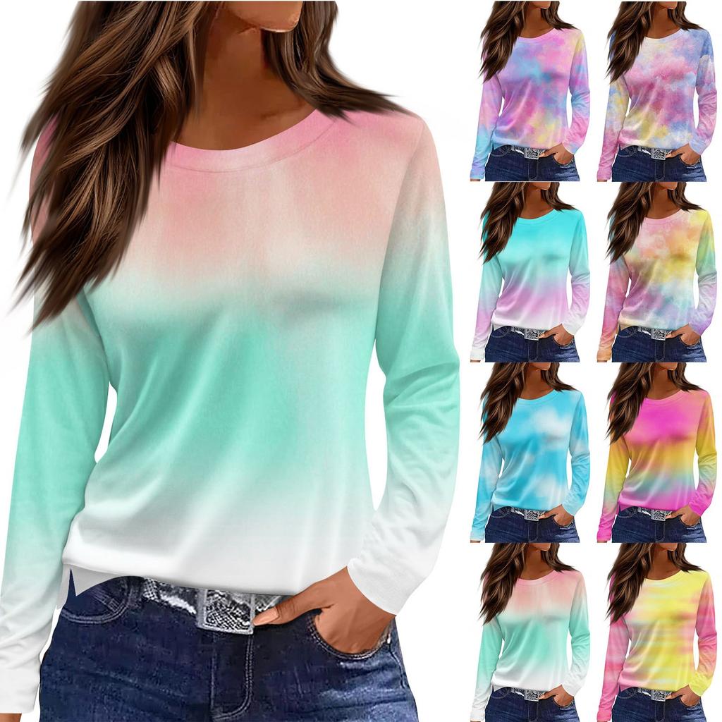 Damski codzienny top z długim rękawem z nadrukiem z okrągłym dekoltem