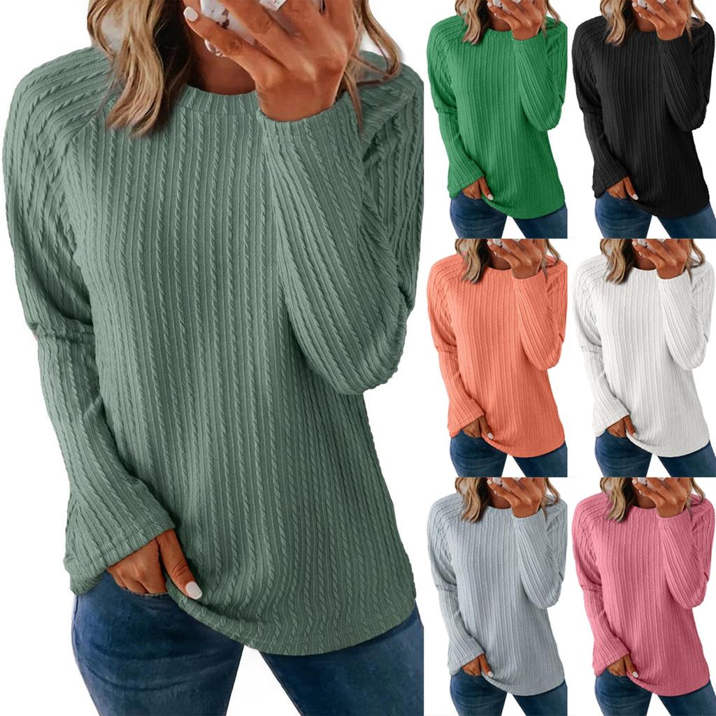 Damska Moda Jednolity Kolor Okrągły Dekolt Długi Rękaw Pulower T-shirt Top