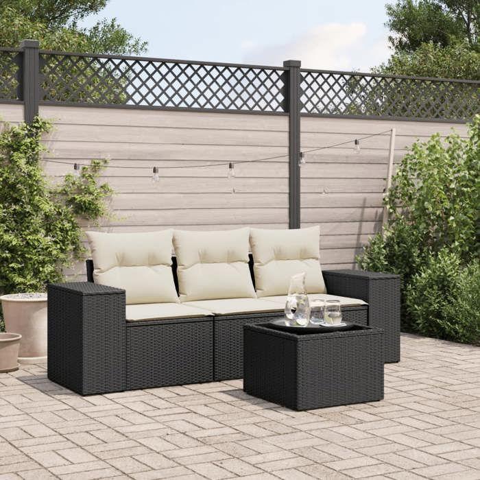 VidaXL Salon de Jardin avec Coussins 4 pcs, Canapés de Terrasse, Ensemble de Meubles de Patio, Mobilier d'Extérieur, Noir 3222265