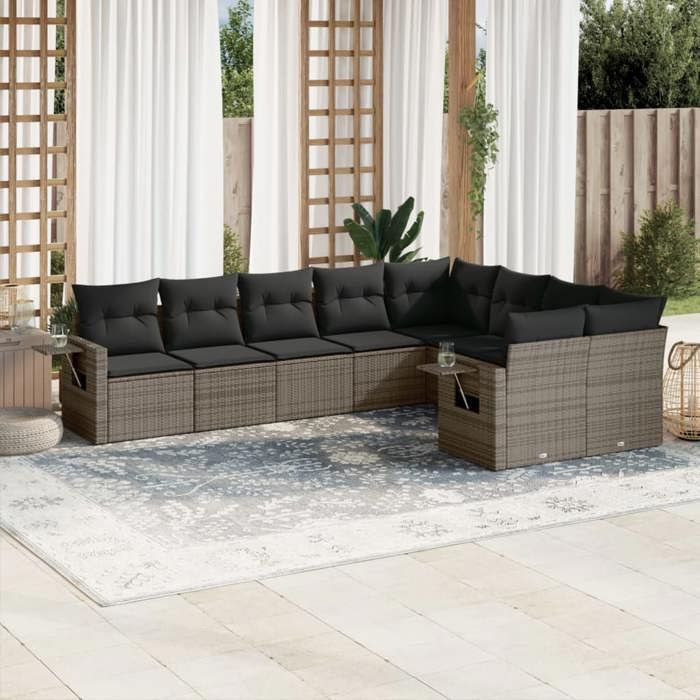 VidaXL Salon de Jardin avec Coussins 9 pcs, Canapés de Terrasse, Ensemble de Meubles de Patio, Mobilier d'Extérieur, Gris 3252977