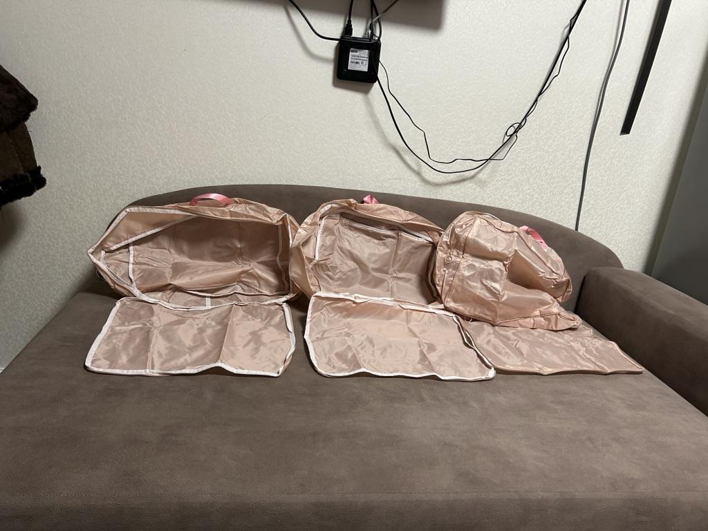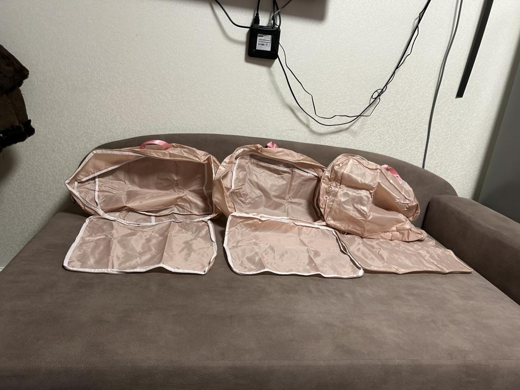 Torby płócienne 3 szt., bez żadnej kompresji. W ogóle nie przypomina zdjęcia, uchwyt też jest z miękkiej tkaniny. Proszę nie prosić więcej o opinię o tych rzeczach