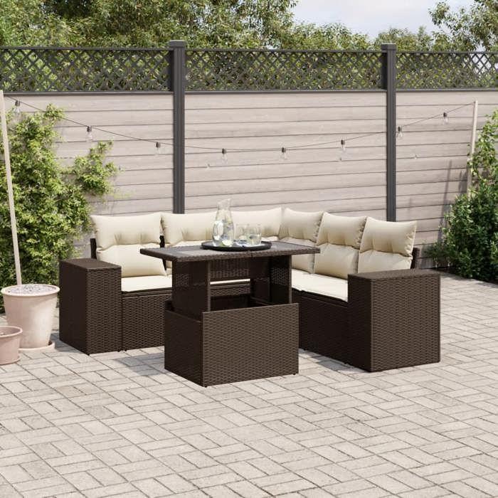 VidaXL Salon de jardin avec coussins 6 pcs marron résine tressée 3269163
