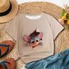 Uroczy i zabawny nadruk myszki/kota Damski T-shirt Przyciągający swobodną modę Damski letni T-shirt z krótkim rękawem