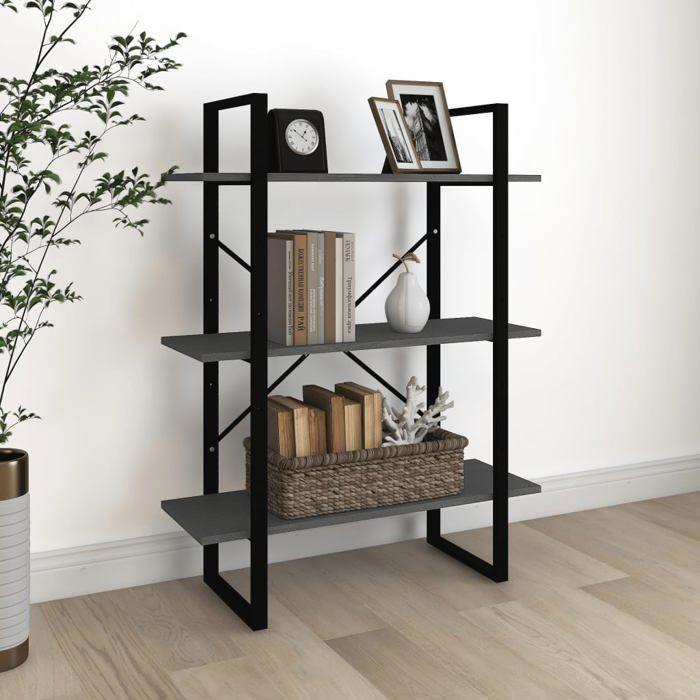 VidaXL Bibliothèque à 3 niveaux Gris 80x30x105 cm Bois de pin massif