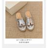 Cowhide version worn straw muffin heightened 6cm Ruth retro word thick bottom slope heel H cool slippers female summer