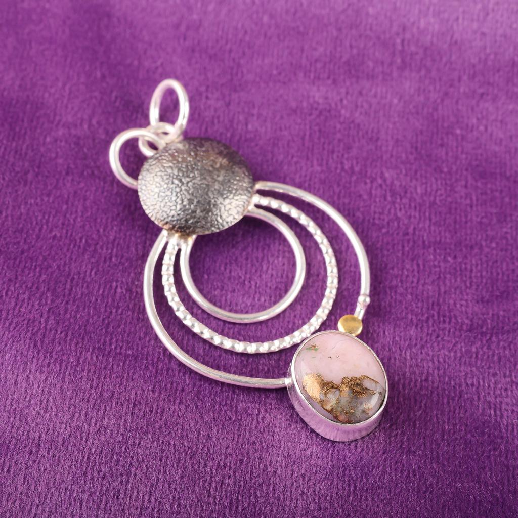 Pink Copper Turquoise Handmade Gemstone Pendant, 925 Solid Sterling Silver Pendant Antique Jewelry, For Engagement Gift
