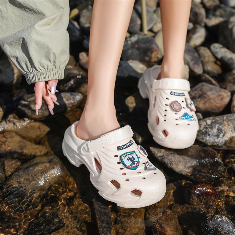 Damskie letnie miękkie antypoślizgowe oddychające kapcie na grubej podeszwie podwyższającej, plażowe obuwie EVA, dezodorujące i odporne na zużycie, z zakrytą piętą