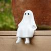 Uroczy projekt ducha: Ręcznie robiona rzeźba z żywicy przedstawiająca uroczego małego duszka i mini wędkę, łącząca dziwność ze słodyczą dla natychmiastowego wzmocnienia halloweenowej atmosfery.