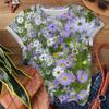 Letni damski T-shirt Kwitnące morze kwiatów Kolorowe kwiaty Pełny nadruk Damski rekreacyjny wszechstronny top z krótkim rękawem