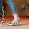 High-heeled soft-leather shallow-mouth single shoes, women's head pedal, new small inner height-increasing thick-heeled shoes, women