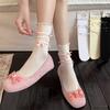 Ballet-style Dui Dui Socks for Women Spring and Summer, Thin Bow-shaped Black Ear-trimmed Mid-calf Socks
