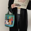 Przenośna Urocza Torba Wiaderko Graffiti ze Wzorem Zwierząt Ins Drukowana Cylindryczna Torba Płócienna Torba Bento Ręczna Torba na Lunch