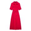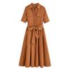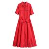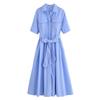 LYRIA Codzienna Sukienka Damska w Paski z Klapami Jednorzędowa z Krótkim Rękawem Wyszczuplająca w Talii Długie Sukienki Nowa Moda Damska Szata Wakacyjna