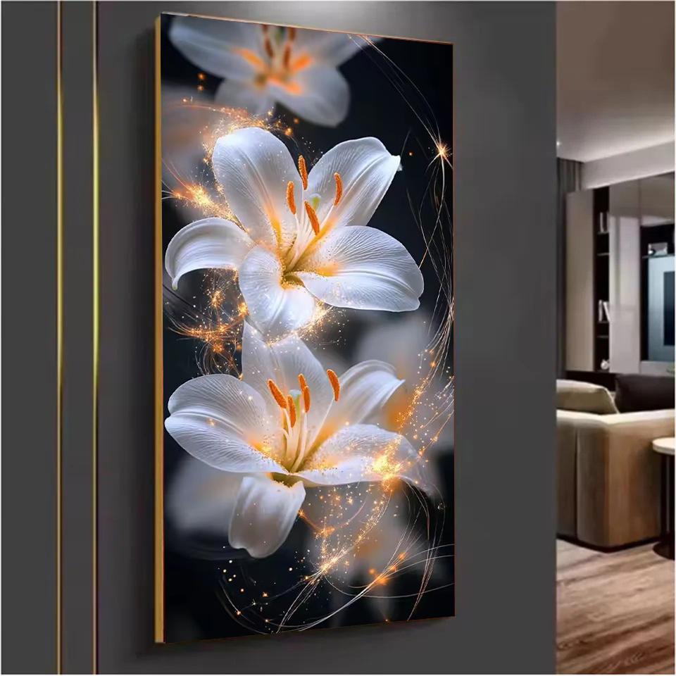 Fantasy Biały Kwiatowy Krajobraz Cyrkoniowy Obraz 5D DIY Malowanie Diamentowe Mozaika Kwiatowa Haft Duży rozmiar haft krzyżykowy