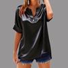 Bluzki i koszule damskie z satyny w jednolitym kolorze z krótkim rękawem i dekoltem w serek