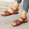 Round-toed New Flat Shoes Retro Hollowed-out Casual Women's Shoes One-button Women's Sandals
