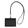 Enrouleur rétractable - wisdompro - cuir pu noir - support id double face - anneau de clé