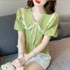 Koszula damska z dekoltem typu łódka, krótkim rękawem, top, krótki, falbanki, dopasowany krój, szyfon