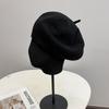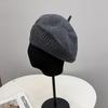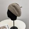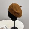 Słodki modny wełniany beret dziergany damski jesienno-zimowy prosty wszechstronny kapelusz malarza