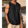 Bawełniano-lniana męska koszulka bez rękawów w stylu vintage, sznurowana, z dekoltem w serek, oddychająca, lekka kamizelka, styl podstawowy, męskie codzienne topy tank