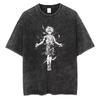 Letnie Bawełniane Luźne Prane Topy T-Shirty z Nadrukiem Anime Męska Odzież Uliczna Vintage Czarny T-Shirt Damski Oversize T-Shirt