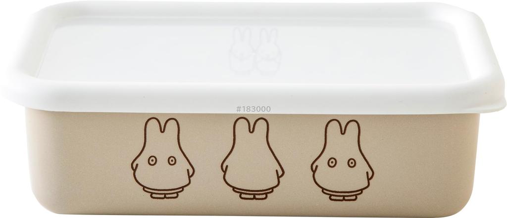 Fuji Enamel Miffy Pastel Storage Container with Shallow Rectangle Square Medium Size Greige Ghost Miffy Enamel Lid,