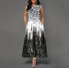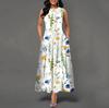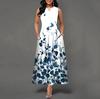 Lato 2022 Damska Sukienka Maxi Bez Rękawów z Nadrukiem z Dekoltem w Serek