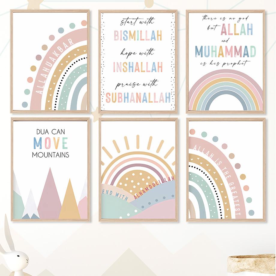 Mountain Sun Rainbow Quots Nursery Wall Art Canvas Painting Nordic Pink Posters And Prints Pictures Baby Kids Room Bedroom Decor