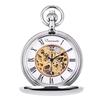 TREEWETO Mechaniczny zegarek kieszonkowy z cyframi rzymskimi i szkieletem srebrny łańcuszek nakręcany ręcznie