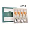 4pcs Cute Rabbit Gift Stainless Steel Spoon Fork Cutlery Set with Adorable Cartoon Bunny Figurine Gift Box