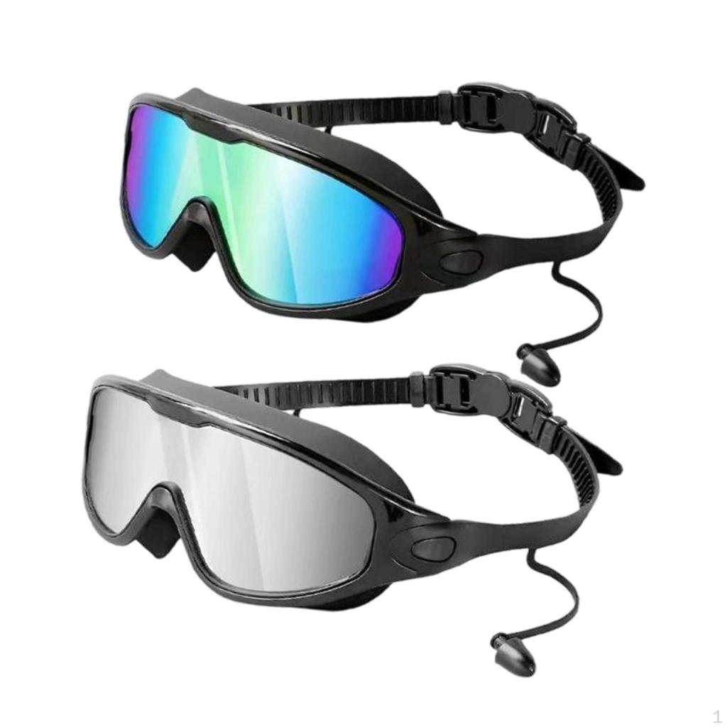 2Pcs Swimming Goggles with Ear Plug 180 Wide Vision Adults Swim Glasses for Swimmer
