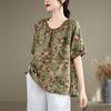 Letnia Cienka Koszulka z Krótkim Rękawem w Drukowany Kolorowy Wzór Artystyczna Retro Luźna Bawełniana T-shirt Top