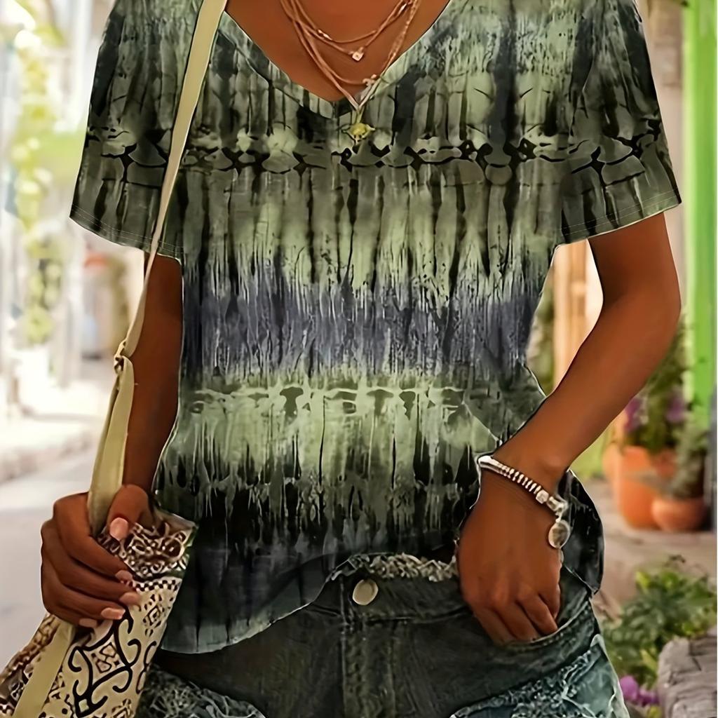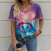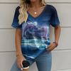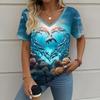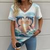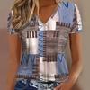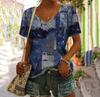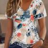Women's T-Shirt Oversized Retro Printed Short-Sleeved V-Neck Fashion Casual Top Street Breathable Summer Women's Clothing