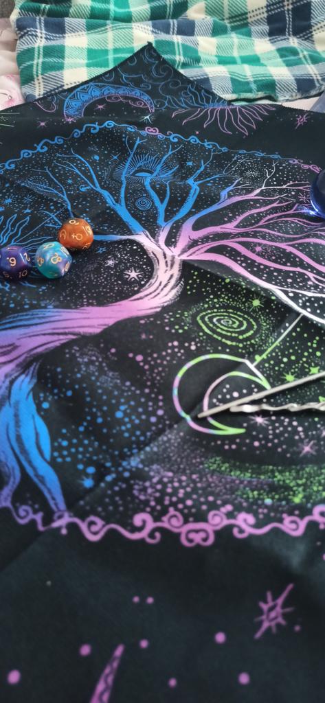 Stwórz magiczne otoczenie do nauki tarota, używając tego pięknego obrusu na swoim stole lub ołtarzu. Pozwól, aby wyjątkowe wzory zainspirowowały Cię do stworzenia więzi z kartami.