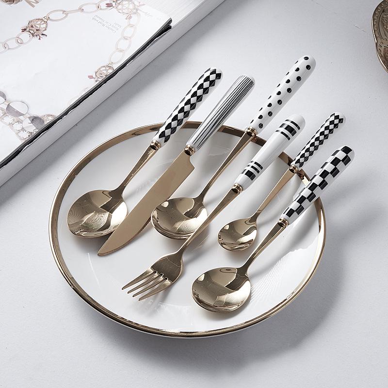Minimalistyczny Ceramiczny Zestaw Noża do Steków, Widelca i Łyżki ze Stali Nierdzewnej - Kreatywna Zachodnia Zastawa Stołowa