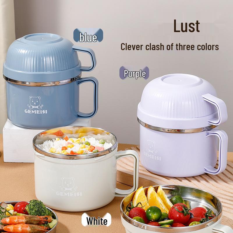 Zestaw lunchowy ze stali nierdzewnej: Izolowana miska na zupki instant z pokrywką, duża pojemność, zawiera pałeczki. Idealny dla studentów i dorosłych.