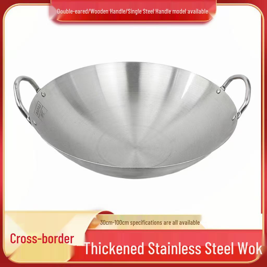 Pogrubiony Wok ze Stali Nierdzewnej Odporny na Rdzę, Niepowlekany, Komercyjny, Okrągłe Dno